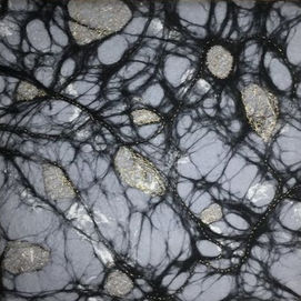 30 x 30 cm textile artwork using shades of grey – black through to white – plus gold.